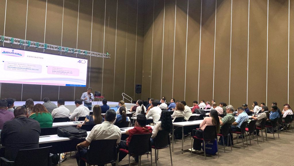 Gran audiencia!, Ing. Heririberto Dorado, Director Biotec International, Latam, en su conferencia técnica: “Valorización del efluente de palma digerido en fertilización del cultivo”.Gracias a todos por su asistencia!