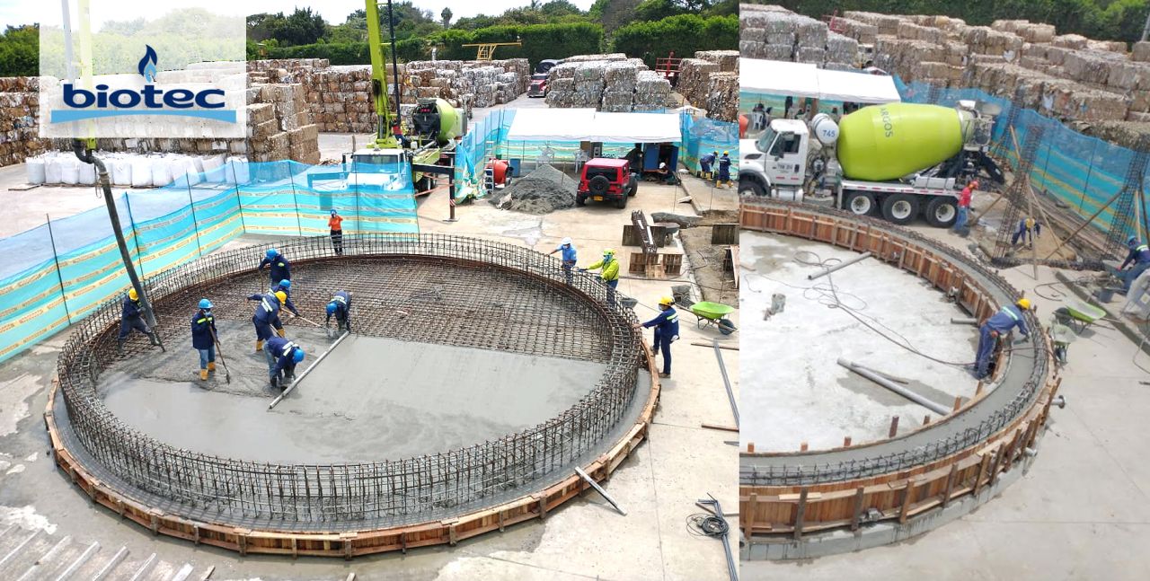 Basement and slab pouring for a bolted steel tank (UASB biodigester – Colombia)